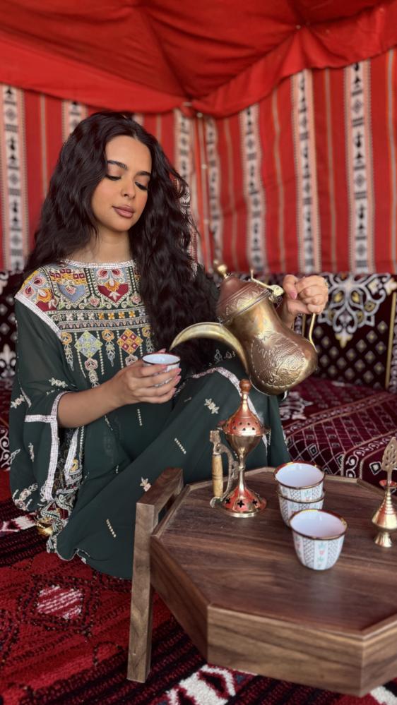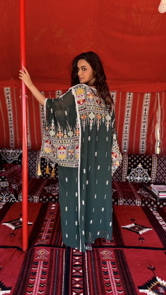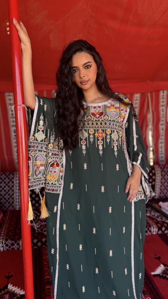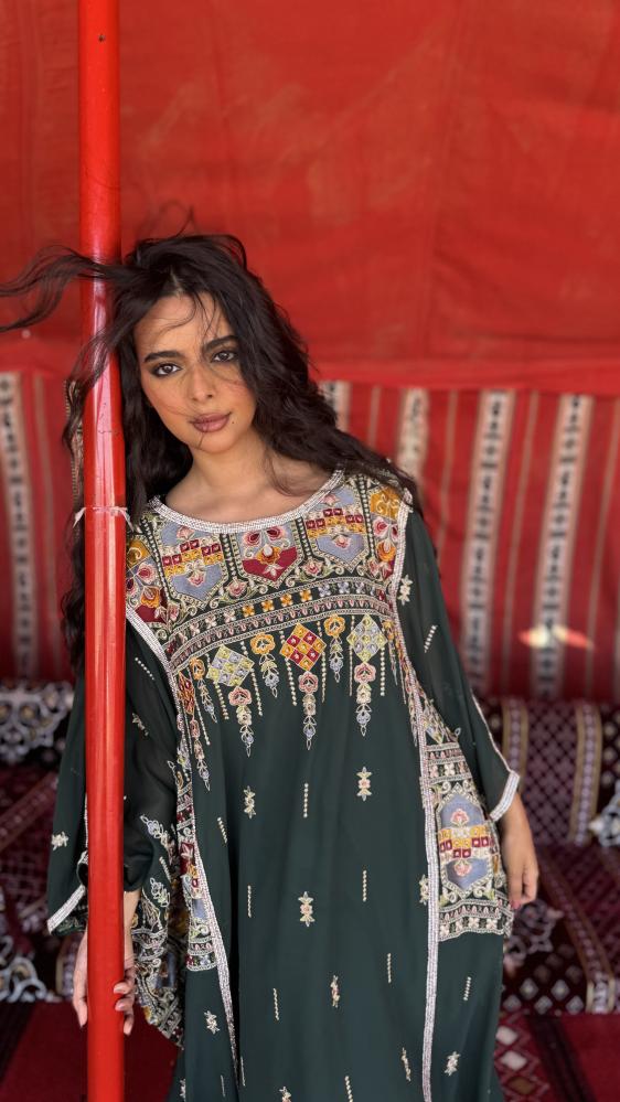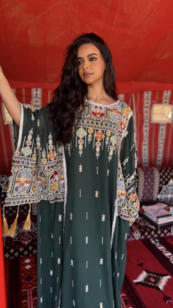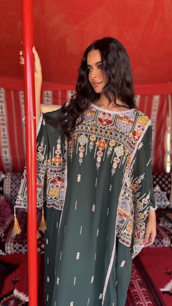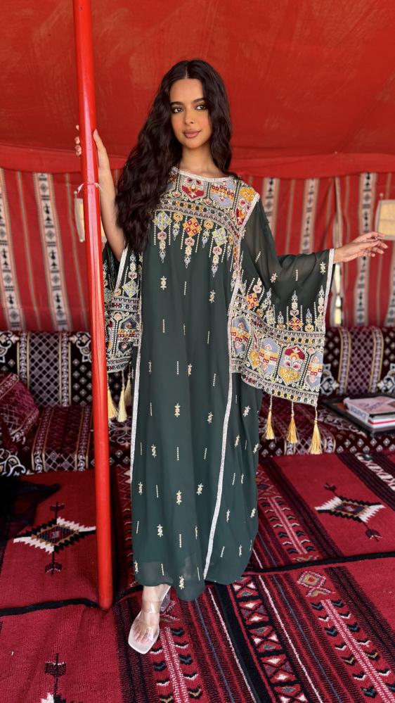 فستان ناعم باكمام واسعه و كرستال من الكتف