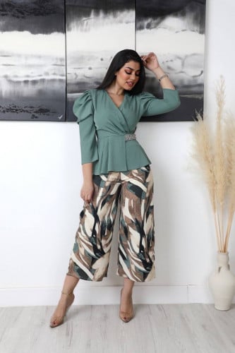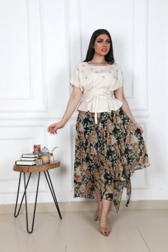 فستان مشجر فخم مع حزامين
