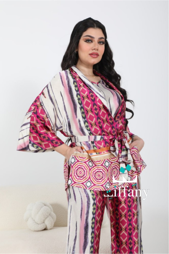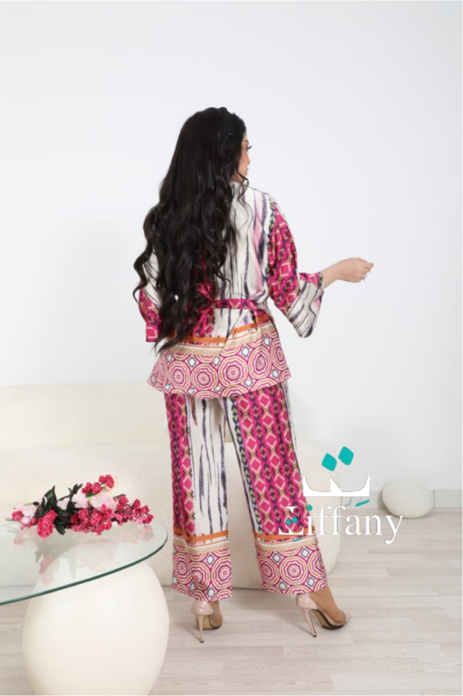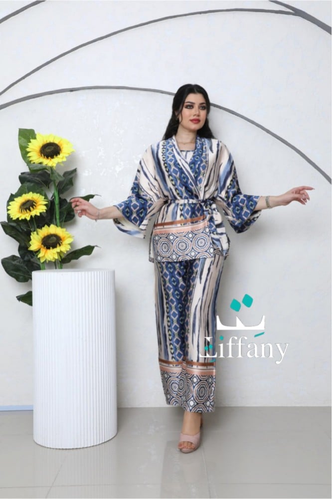 فستان انيق بكسرات من تحت و ورود من الخصر