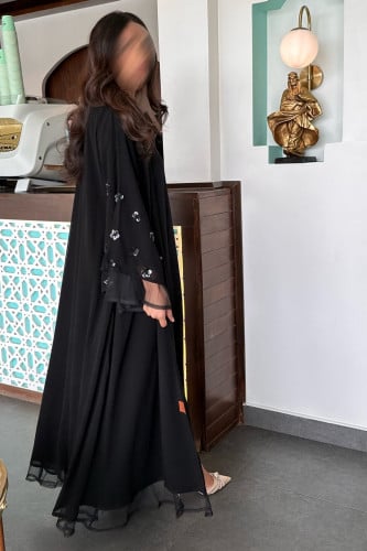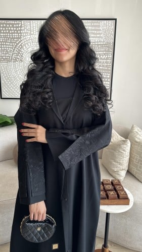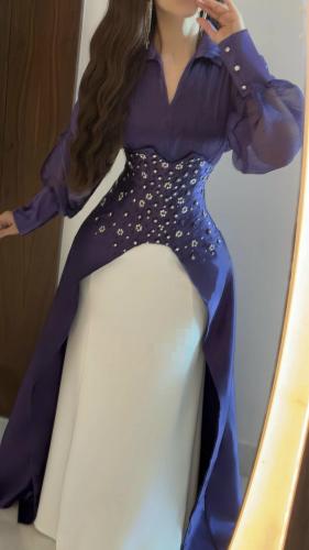 فستان انيق بكسرات من تحت و ورود من الخصر