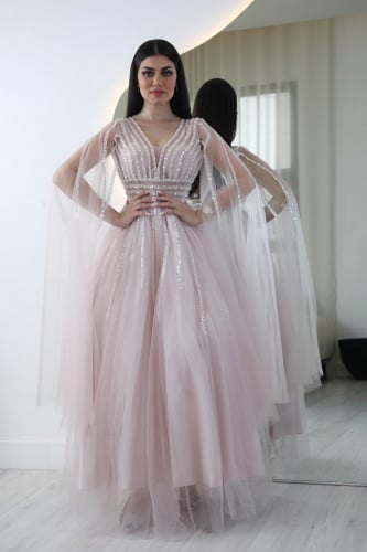 فستان انيق بكسرات من تحت و ورود من الخصر