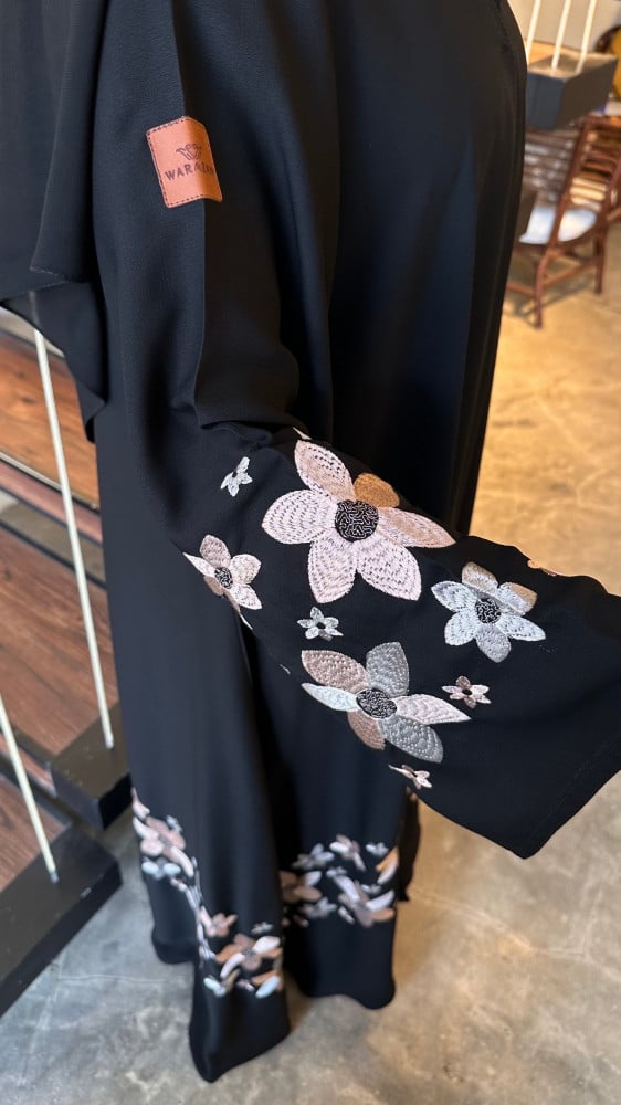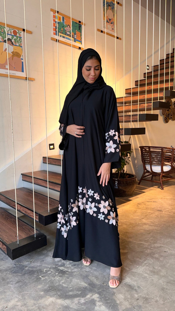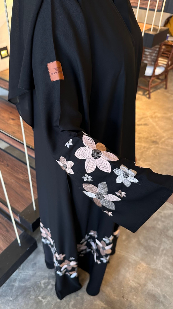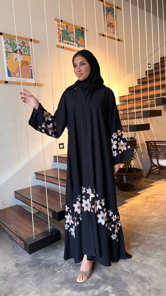 فستان انيق بكسرات من تحت و ورود من الخصر