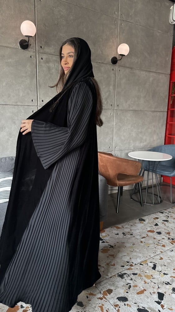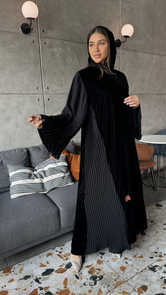 عبايه كريب ملكي بتطريز يدوي من الصدر