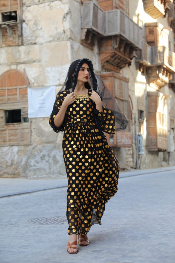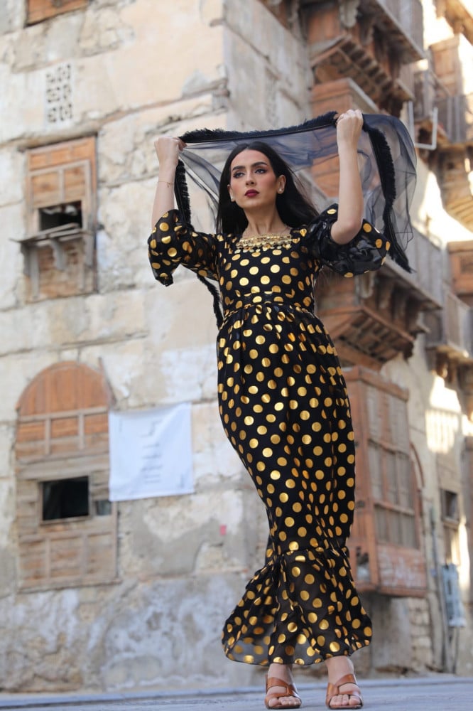 فستان اسود يوم التاسيس مع طرحة