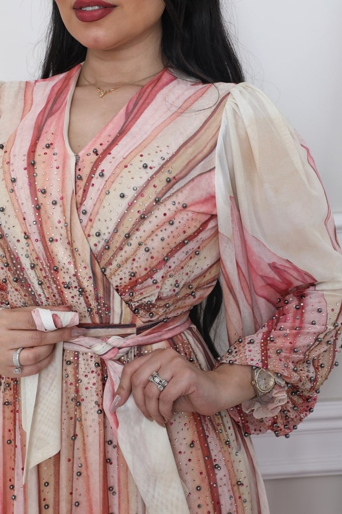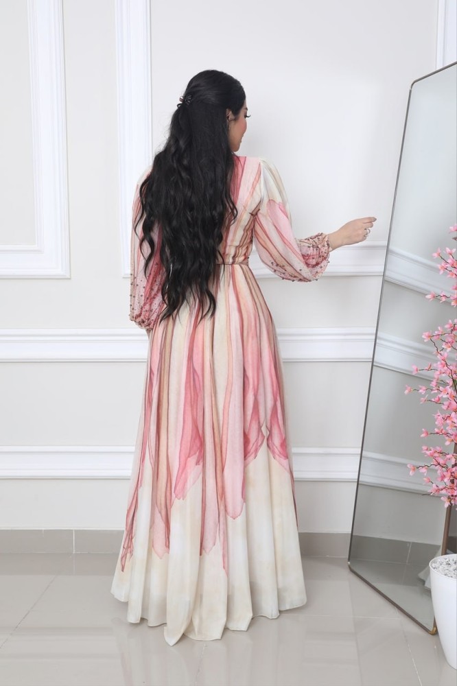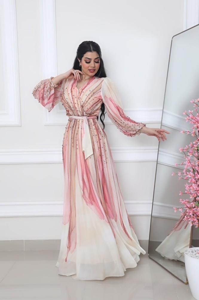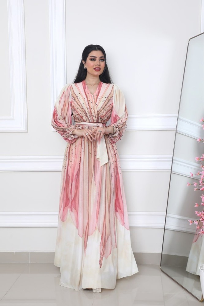 فستان ملكي بكرستال و اكمام شفافه وبستايل انيق