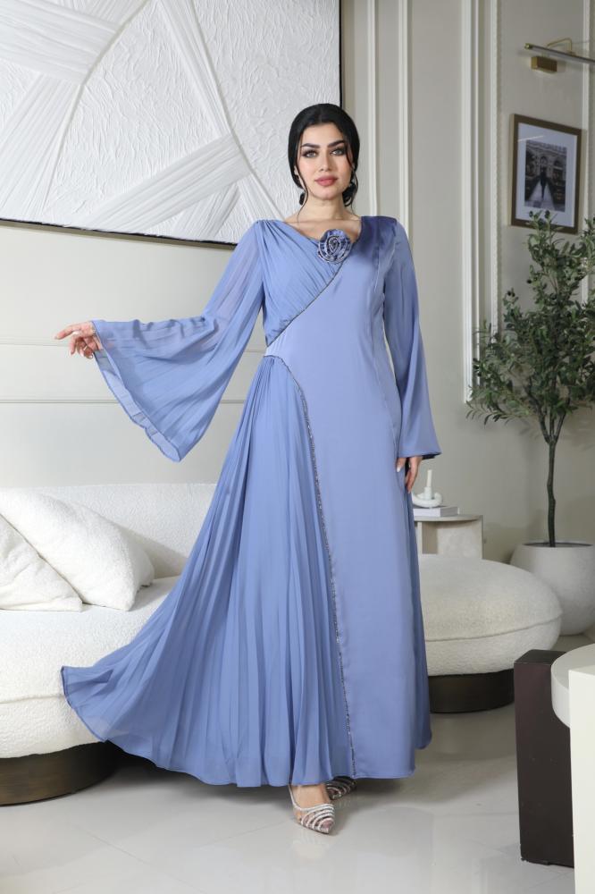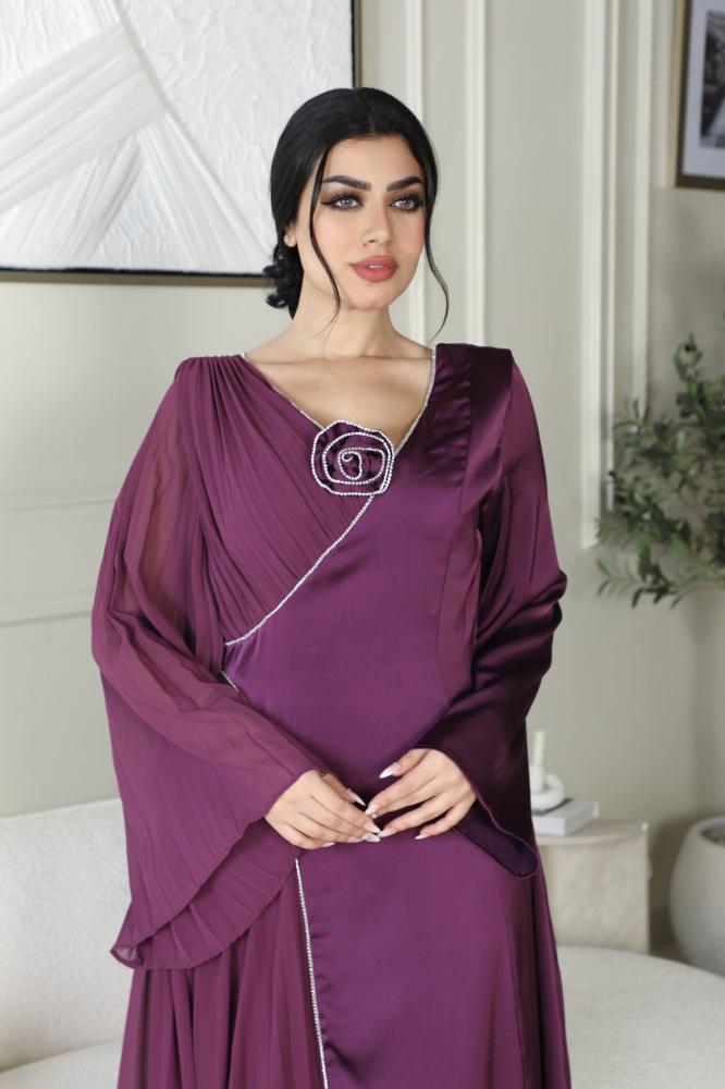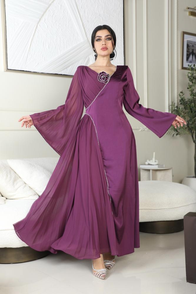 فستان انيق بورده و كسرات من الجنب