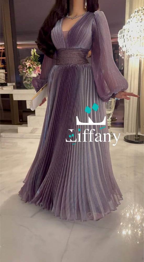 فستان ملكي بكرستال و اكمام شفافه وبستايل انيق