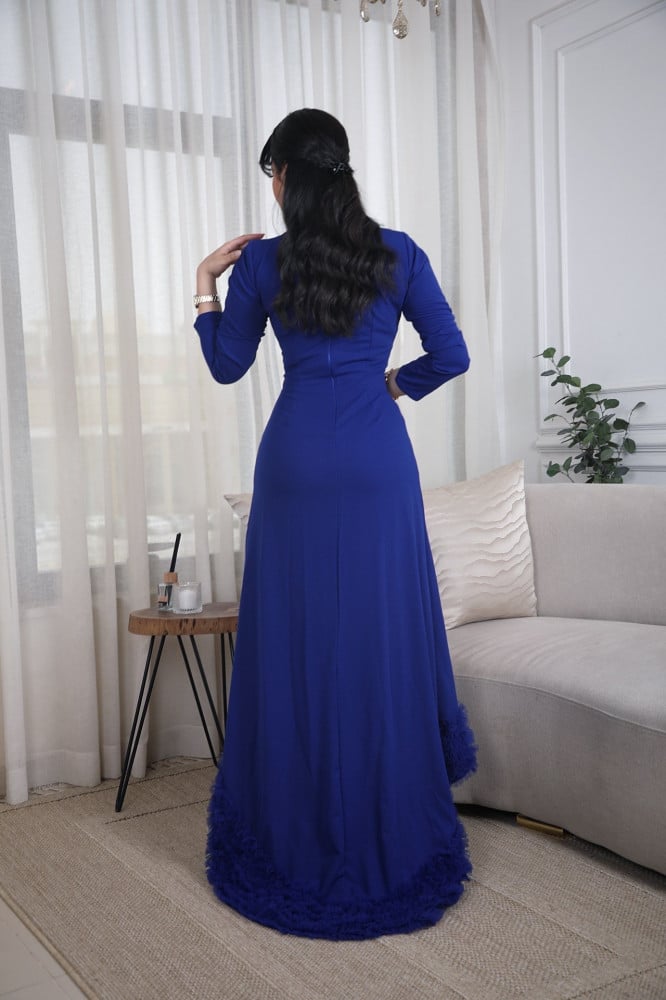 فستان انيق بكسرات من تحت و ورود من الخصر