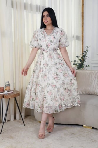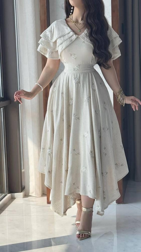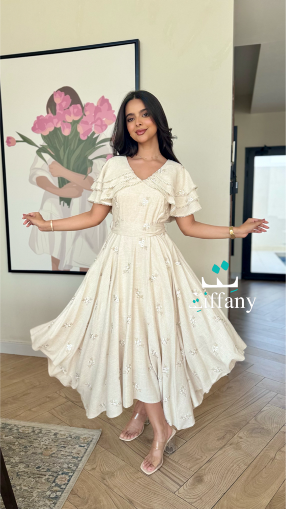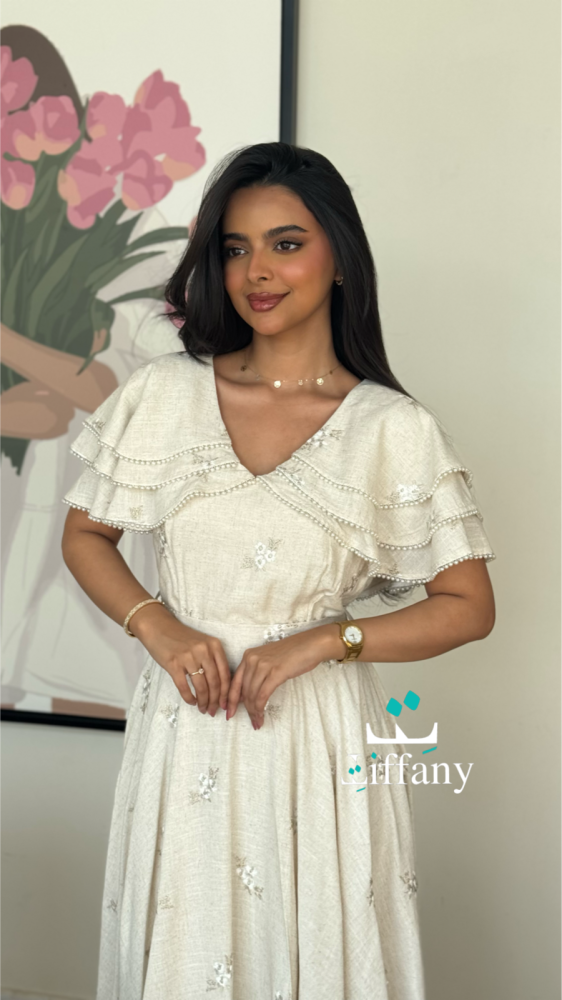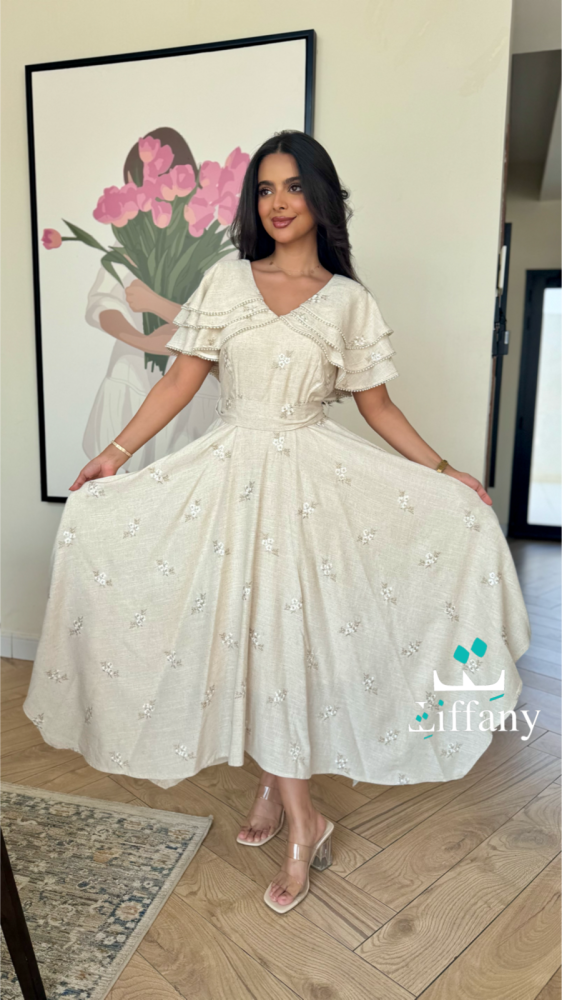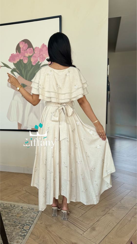 فستان بقصه طبقات من الكتف