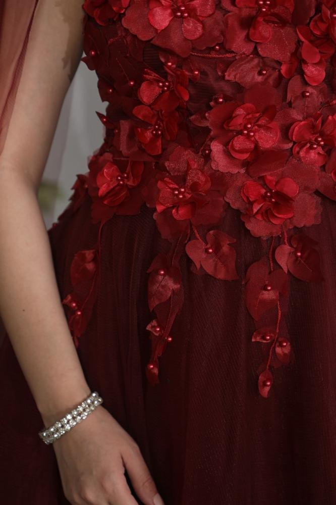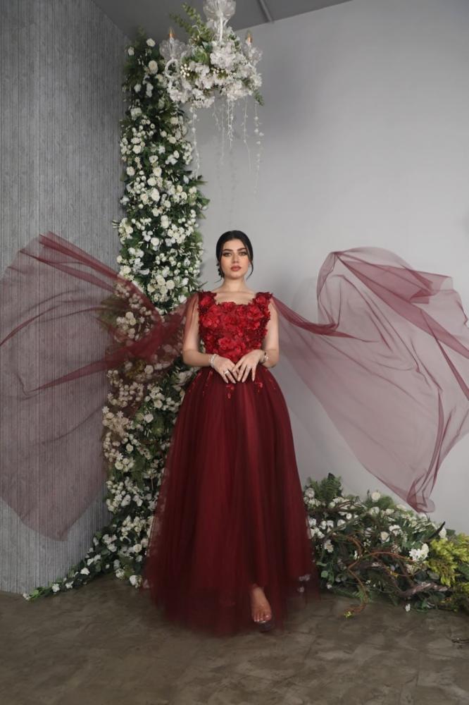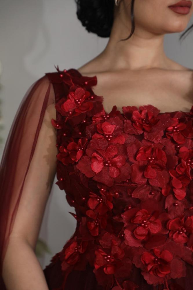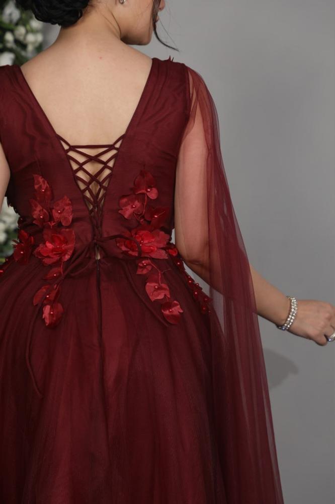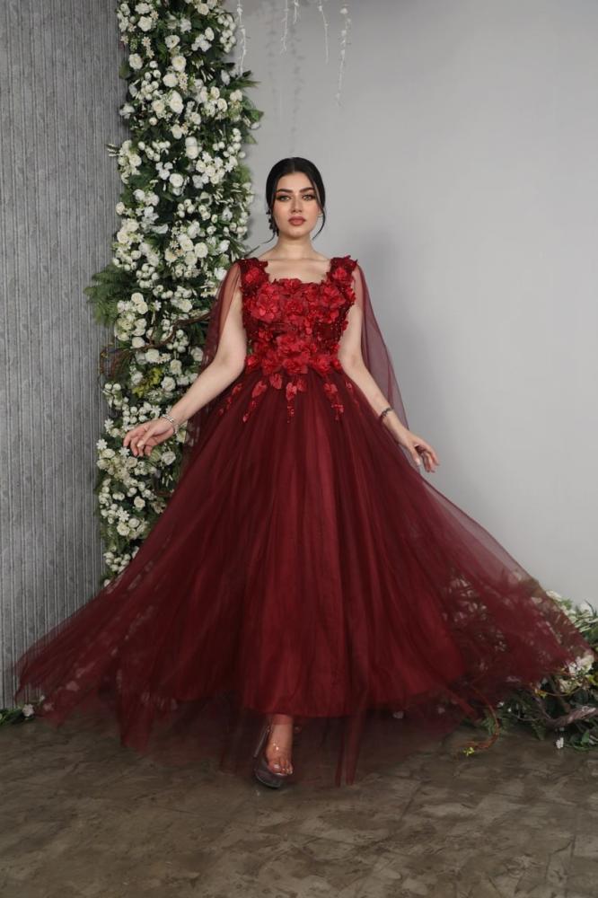 فستان ناعم باكمام واسعه و كرستال من الكتف