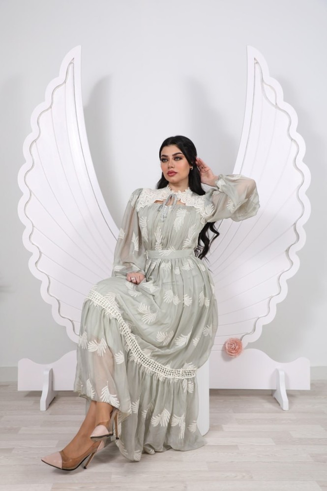 فستان بقصه طبقات من الكتف
