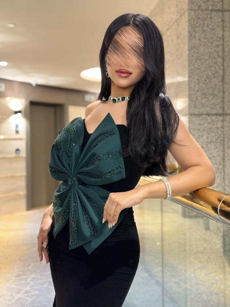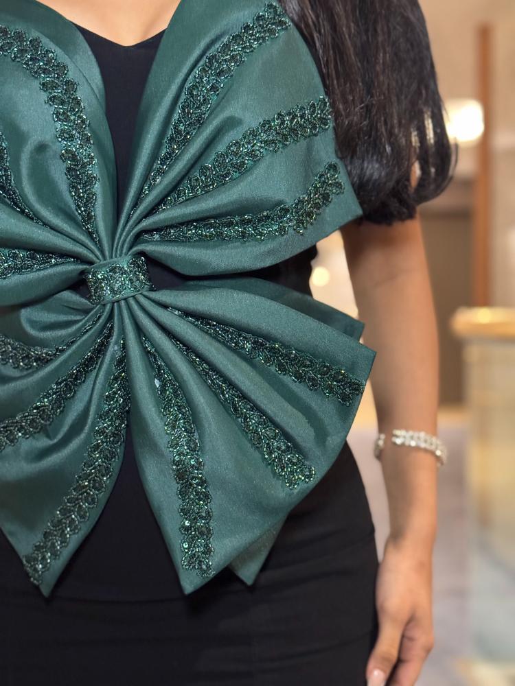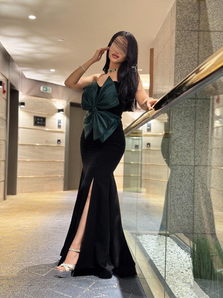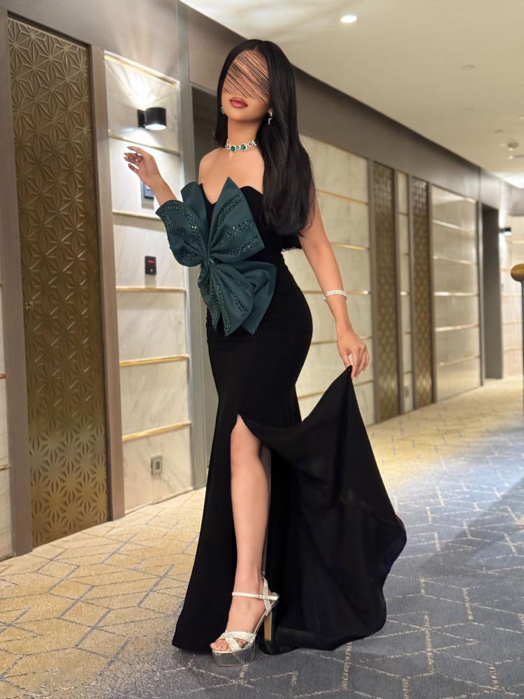 فستان سهرة بفيونكة من الصدر للمناسبات