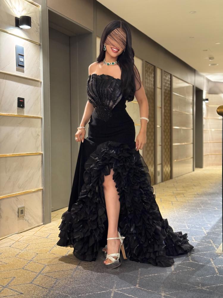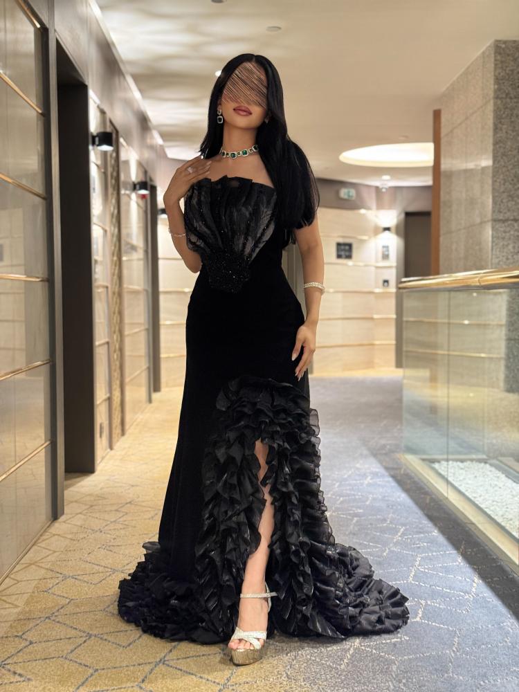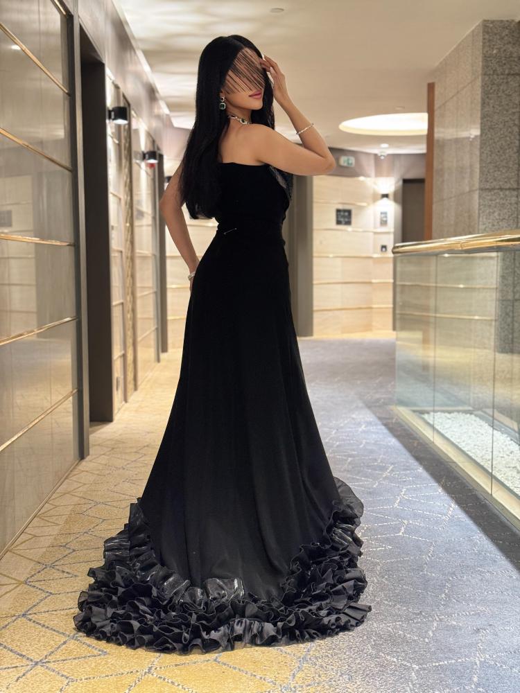 فساتين سهرة كريب طويلة ناعمة بقصة خصر أنيقة