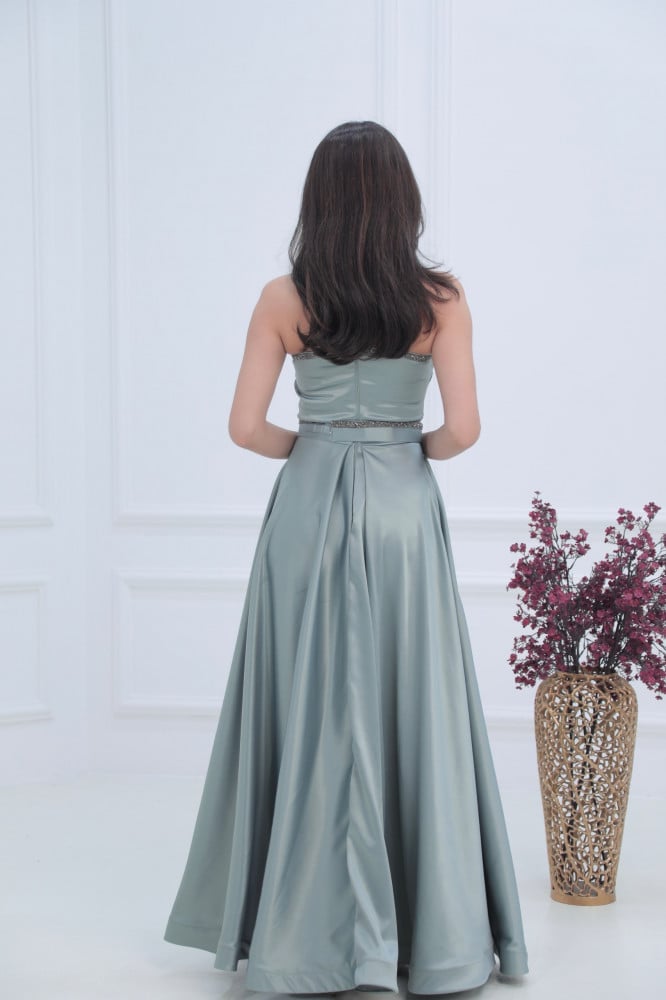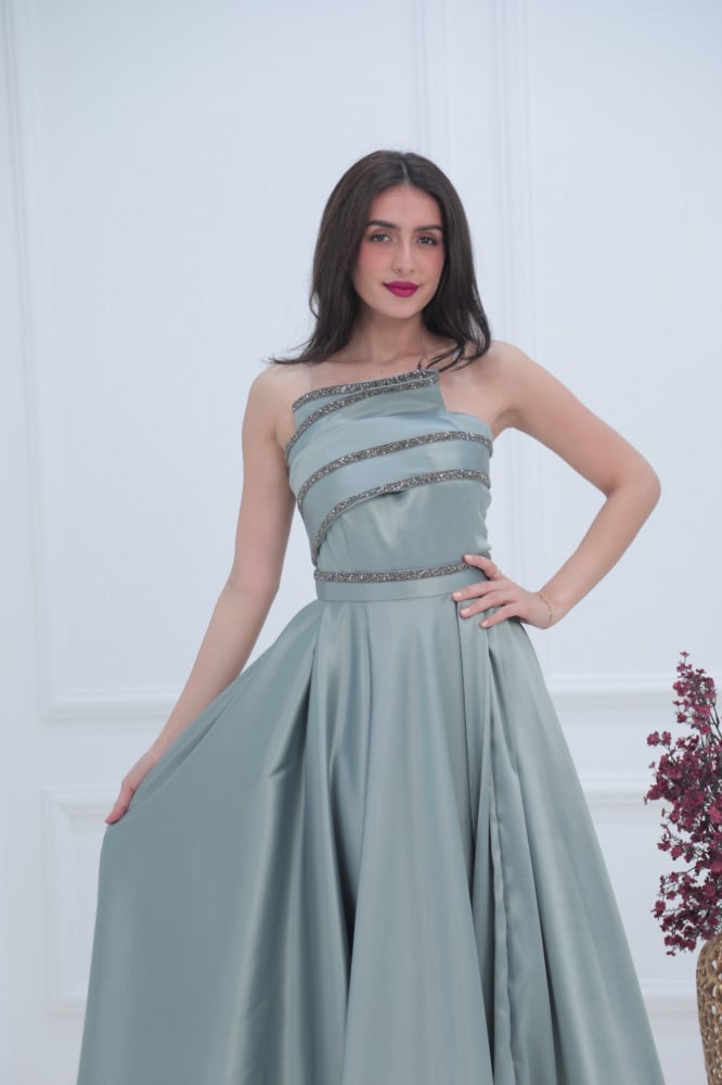 فستان انيق بكسرات من تحت و ورود من الخصر
