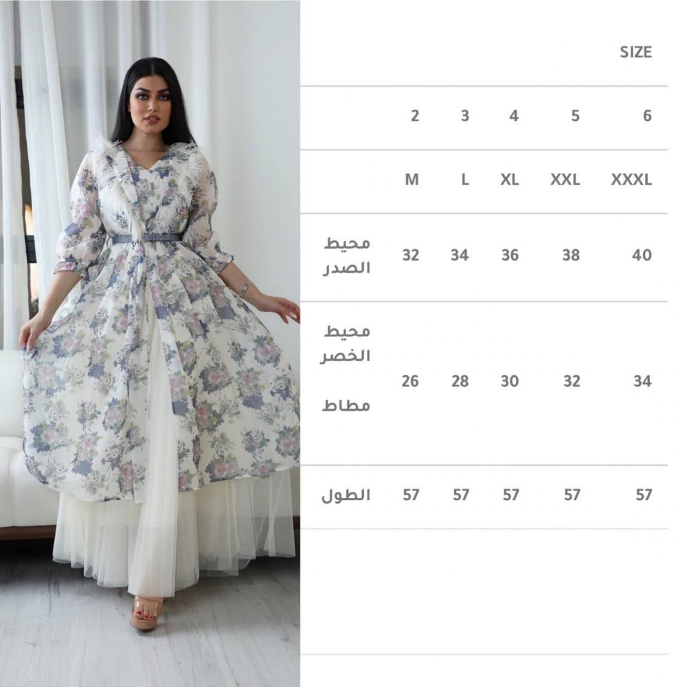 فستان انيق بكسرات من تحت و ورود من الخصر