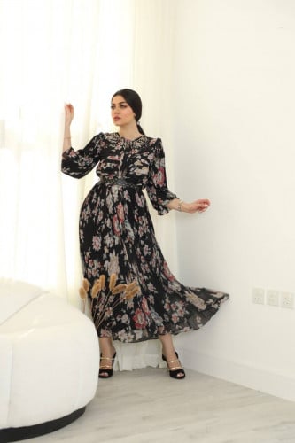 عبايه كريب ملكي بتطريز يدوي من الصدر