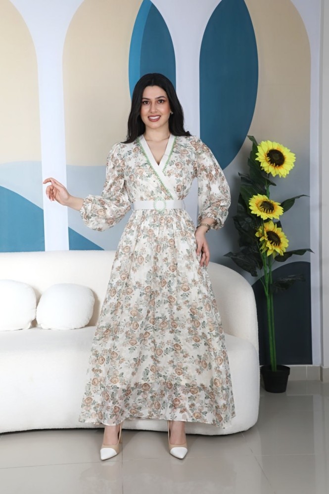 فستان ملكي بكرستال و اكمام شفافه وبستايل انيق