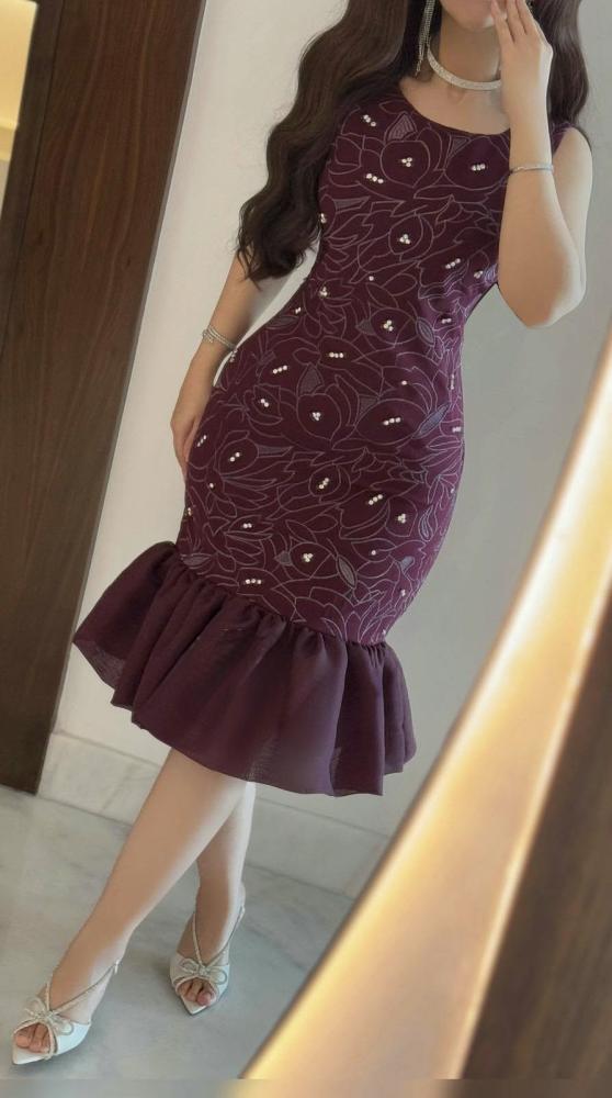 فساتين سهرة بأكمام طويلة مع كسرات ملكية