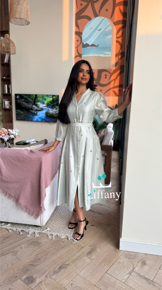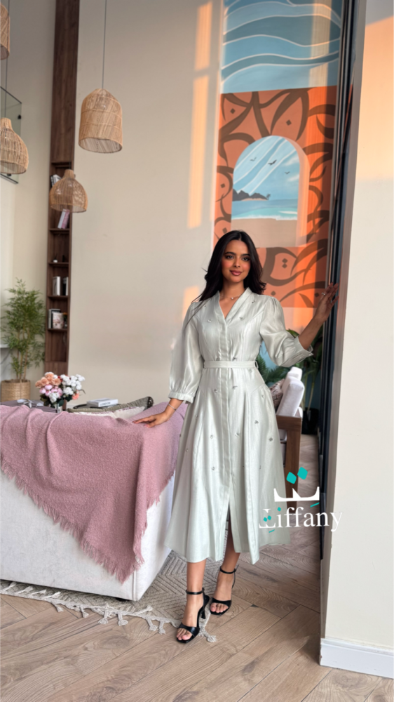 فساتين سهرة بأكمام طويلة مع كسرات ملكية
